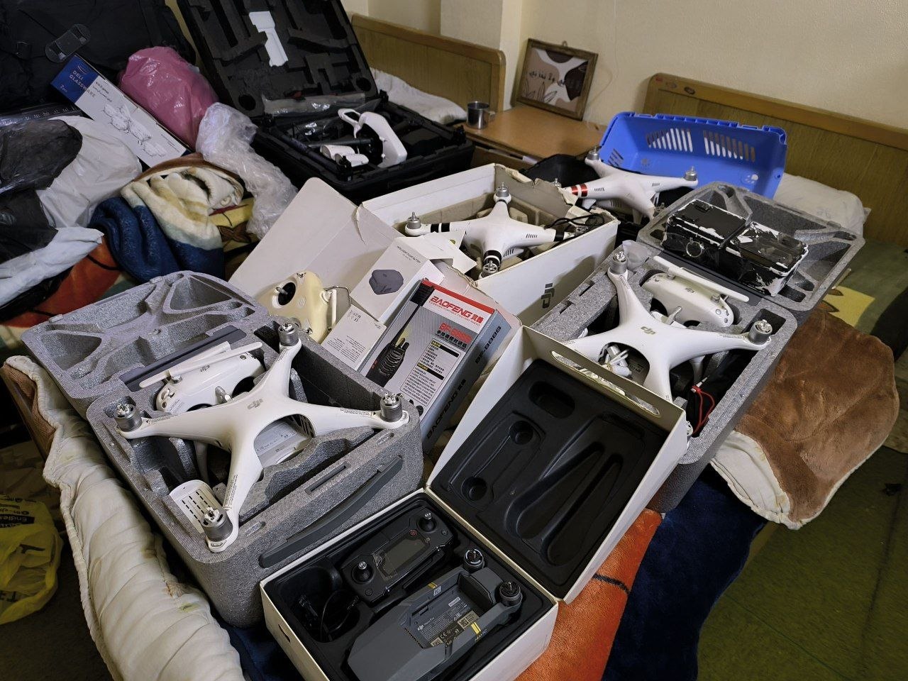 Помимо этого, изъяты самодельные взрывные устройства, различное оружие и боеприпасы, а также дроны-камикадзе, что в своем роде довольно редкое явление в таких случаях.