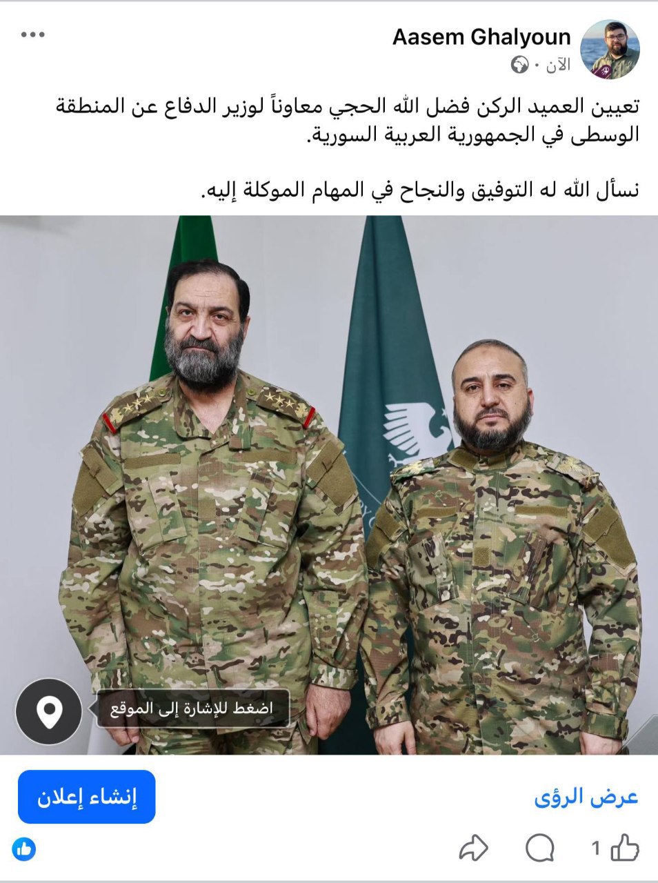 Вслед за новыми назначениями в руководстве «сирийской армии» произошло еще одно: Фадлалла аль-Хаджи получил пост т.н. «помощника министра обороны по центральному региону».